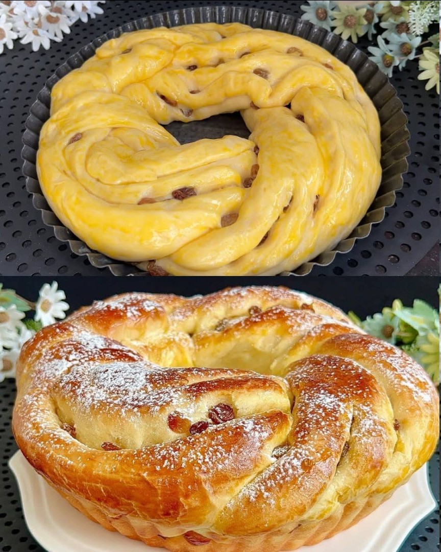 Estos bollitos de levadura suaves con pasas son un pan tierno y ligeramente dulce, perfecto para el desayuno, la merienda o una merienda reconfortante. Elaborados con una sencilla masa de levadura enriquecida con huevos, leche y mantequilla, rebozados con pasas gruesas y acabados con una capa brillante de huevo batido, levantándose para obtener un interior ligero y esponjoso y una corteza dorada. Ya sea que se disfruten solos, untados con mantequilla o mojados en café, estos bollitos son un capricho casero irresistible.