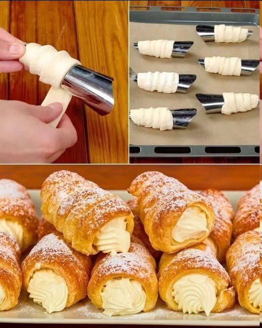 ¿Te imaginas un bocado crujiente por fuera, suave y cremoso por dentro, con un toque dulce y delicado? Eso es justo lo que ofrecen estos croissants rellenos de crema pastelera y nata montada. Perfectos para el desayuno, una merienda especial o para acompañar una taza de café, son tan irresistibles que desaparecerán en segundos. Y lo mejor de todo: puedes prepararlos en casa sin complicaciones.