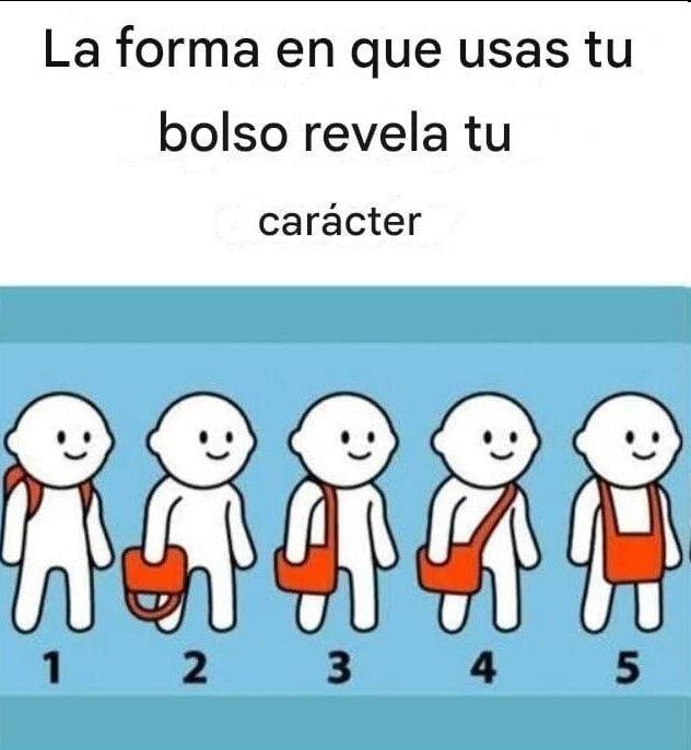 Tu tendencia a llevar el bolso en la mano simboliza un deseo de dominio e independencia. Eres del tipo de persona a la que le gusta mantenerse informada y probablemente tengas una opinión bien formada sobre casi todo. Esta curiosidad alimenta tu crecimiento intelectual y te asegura estar siempre al día de las últimas tendencias y acontecimientos. Aunque puedes parecer asertiva, tu actitud directa y fiable te hace confiable y digna de confianza.