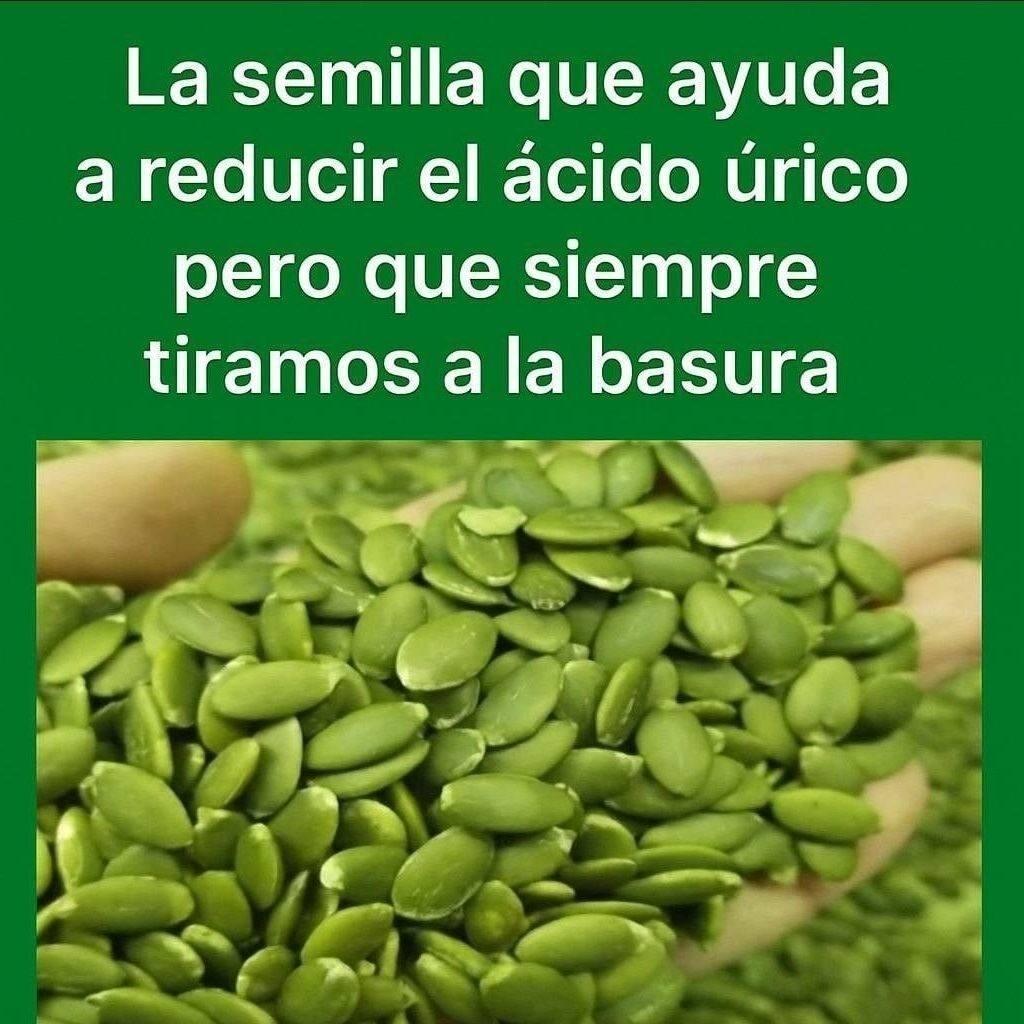 La imagen sugiere que hay una semilla (en este caso, por las plántulas de calabaza ) que todos conocemos o desechamos, pero que puede mantener los beneficios para controlar los niveles de ácido úrico.