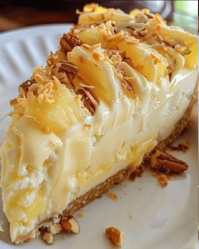 La tarta de piña con queso crema es un postre delicioso que combina los sabores tropicales de la piña con la suavidad y riqueza del queso crema y la crema batida. Esta tarta no solo es fácil de preparar, sino que también es una opción ideal para reuniones de verano, ocasiones especiales o simplemente como un final refrescante para cualquier comida. El equilibrio entre la acidez de la piña y el relleno cremoso y aterciopelado crea un postre irresistible que seguramente impresionará a tus invitados. Ya sea que decidas preparar tu propia base de galleta o usar una comprada, esta tarta se prepara rápidamente y sabe absolutamente deliciosa.
