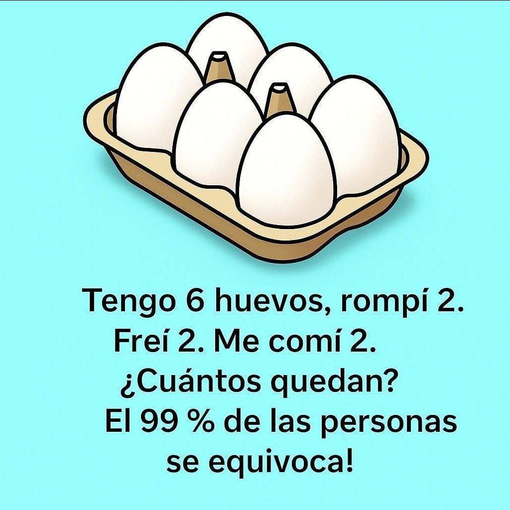 “Tengo 6 huevos. Rompí 2, freí 2 y me comí 2. ¿Cuántos huevos quedan? El 99% de las personas se equivoca.”